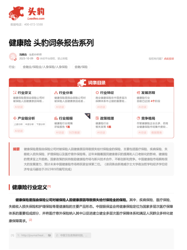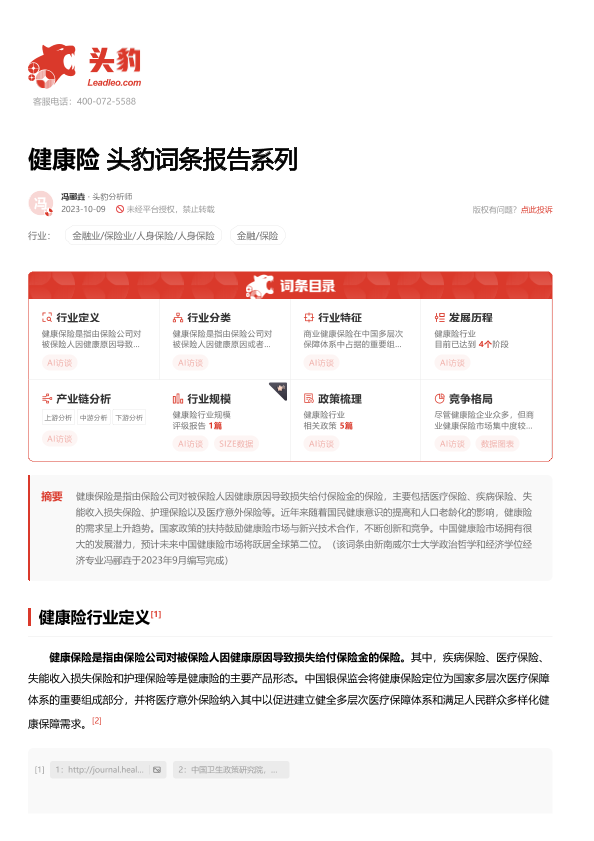 【头豹研究院】【20231009】健康险头豹词条报告系列-20页