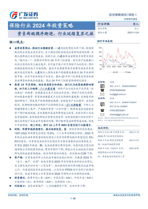【广发证券】【20231124】保险行业2024年投资策略:资负两端循序渐进,行业延续复苏之旅-25页