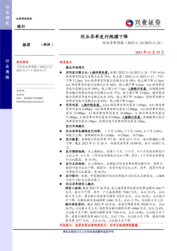 【兴业证券】【20231125】同业存单发行规模下降-16页