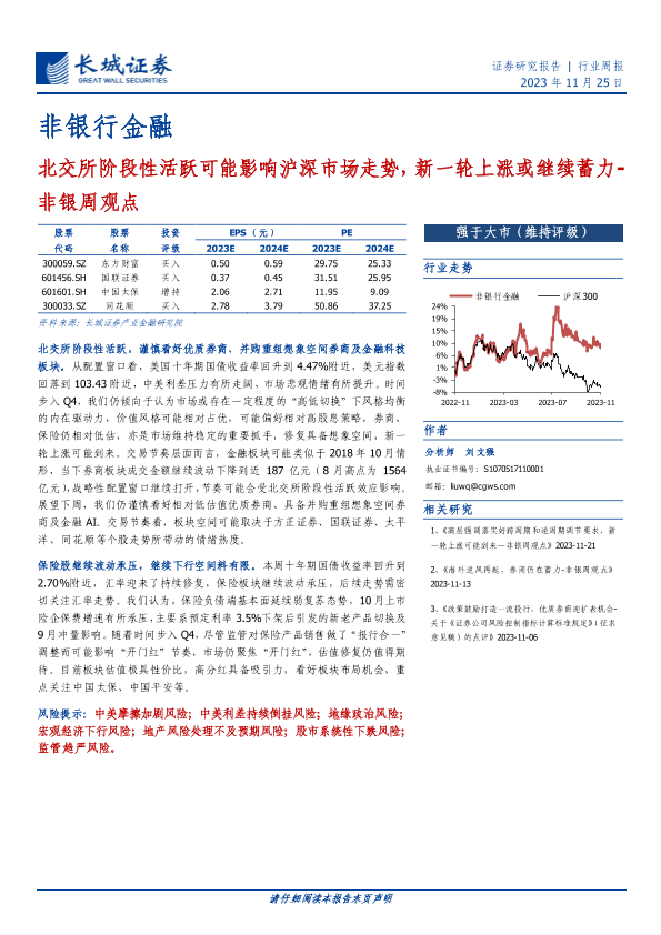 【长城证券】【20231125】非银行金融行业周报:北交所阶段性活跃可能影响沪深市场走势,新一轮上涨或继续蓄力-30页