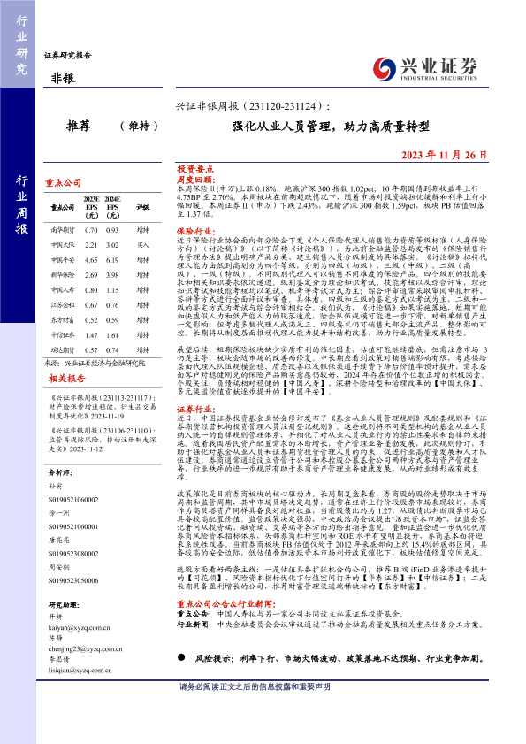 【兴业证券】【20231126】兴证非银周报:强化从业人员管理,助力高质量转型-13页