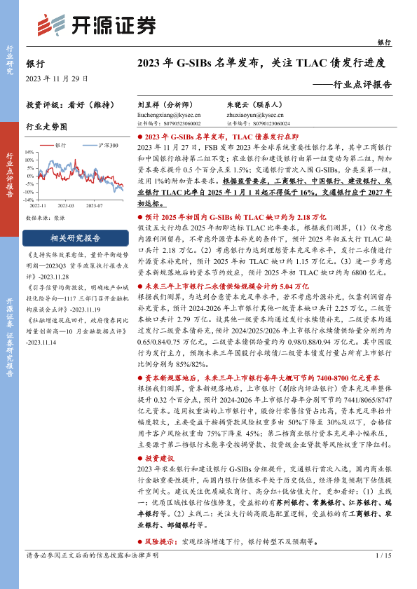 【开源证券】【20231129】2023年G-SIBs名单发布,关注TLAC债发行进度-15页