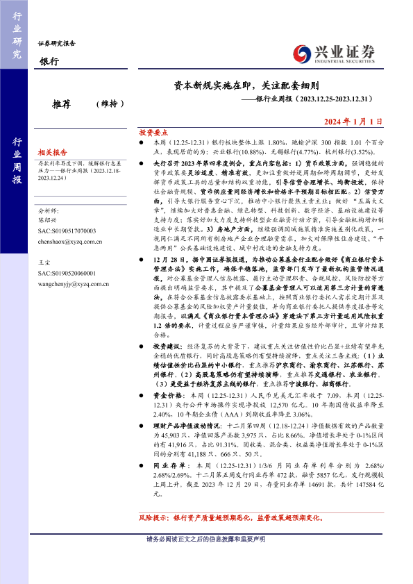 【兴业证券】【20240101】资本新规实施在即,关注配套细则-15页