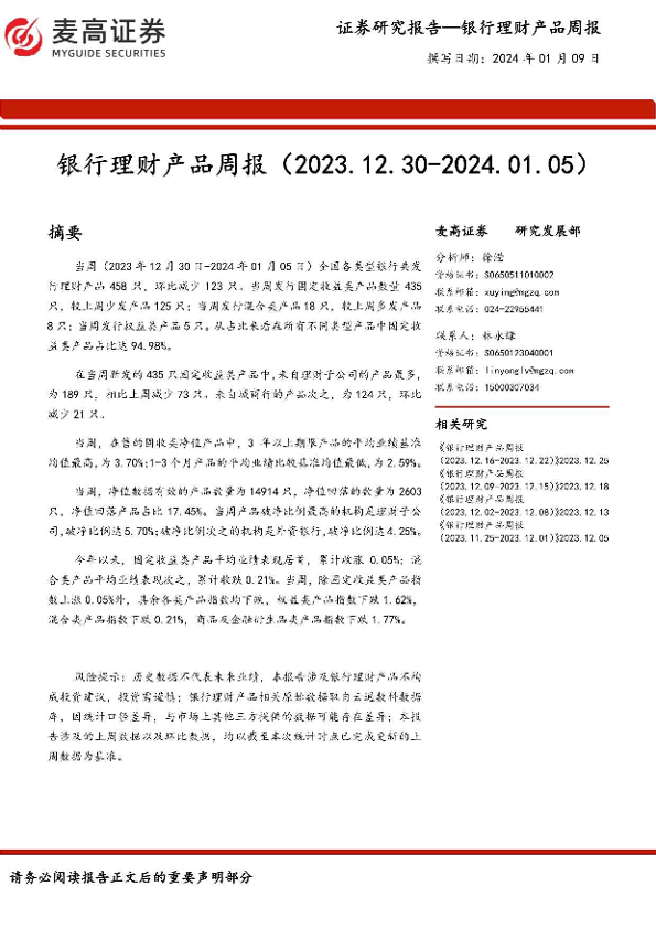 【麦高证券】【20240109】银行理财产品周报-13页