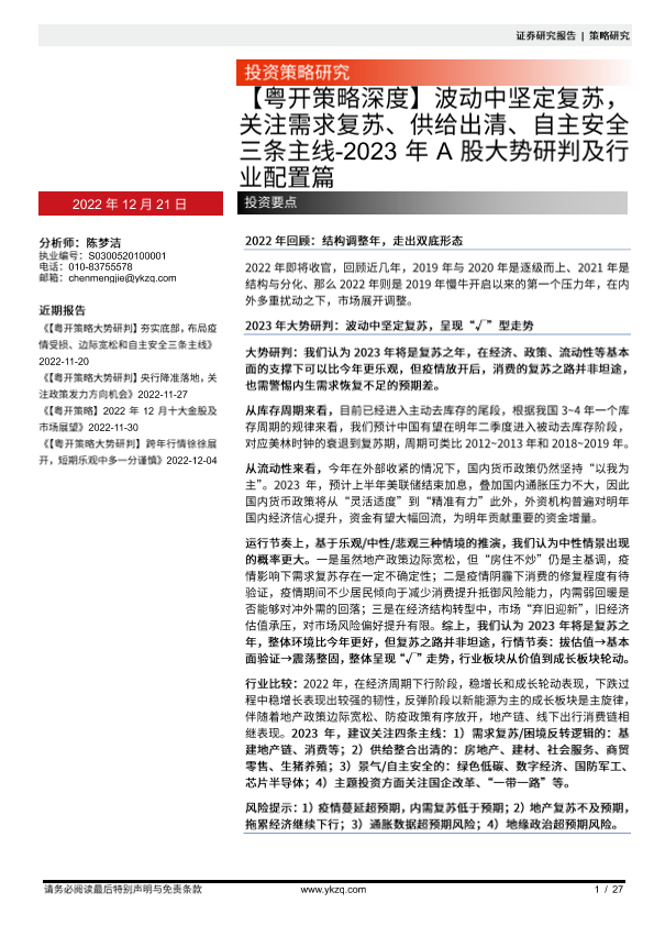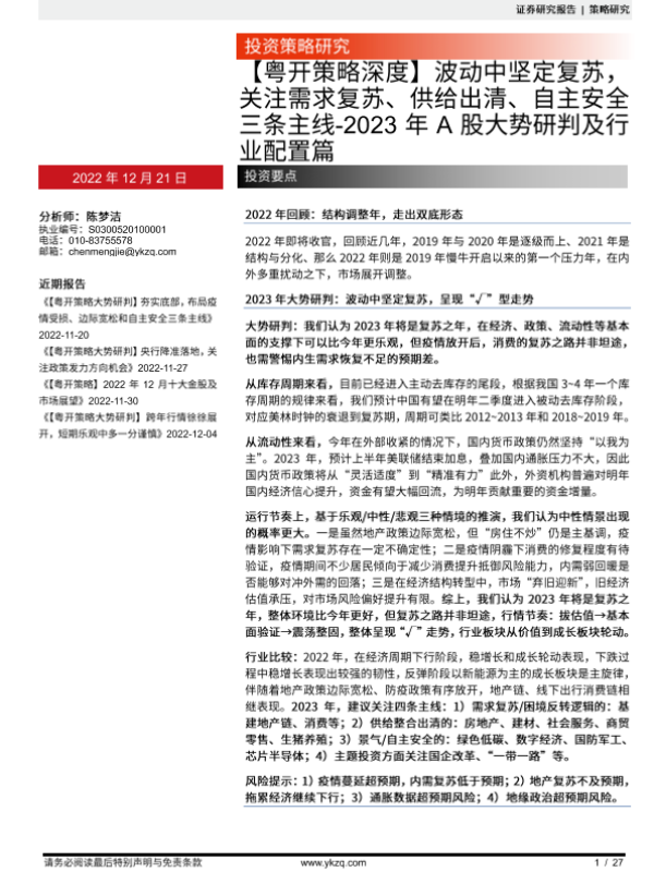【粤开证券】【20221221】2023年A股大势研判及行业配置篇:波动中坚定复苏,关注需求复苏、供给出清、自主安全三条主线-27页