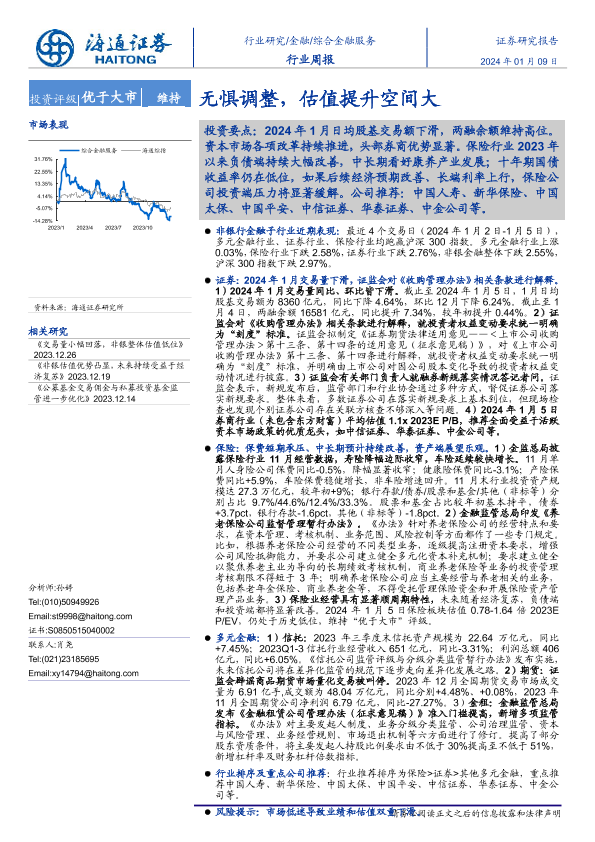 【海通证券】【20240109】综合金融服务行业周报:无惧调整,估值提升空间大-12页