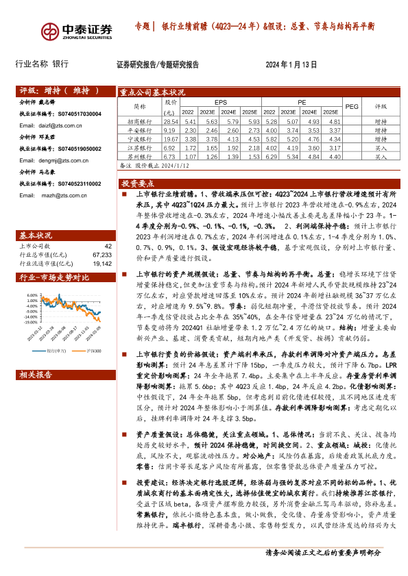 【中泰证券】【20240113】银行业绩前瞻(4Q23—24年)&假设:总量、节奏与结构再平衡-29页