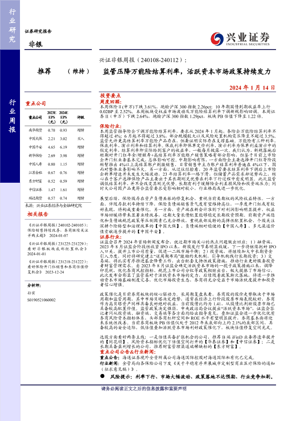 【兴业证券】【20240114】监管压降万能险结算利率,活跃资本市场政策持续发力-13页