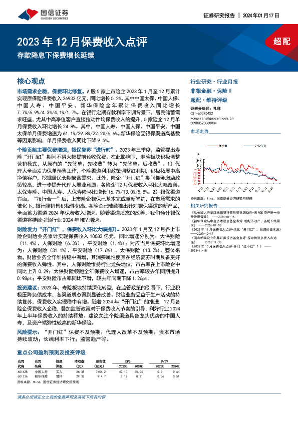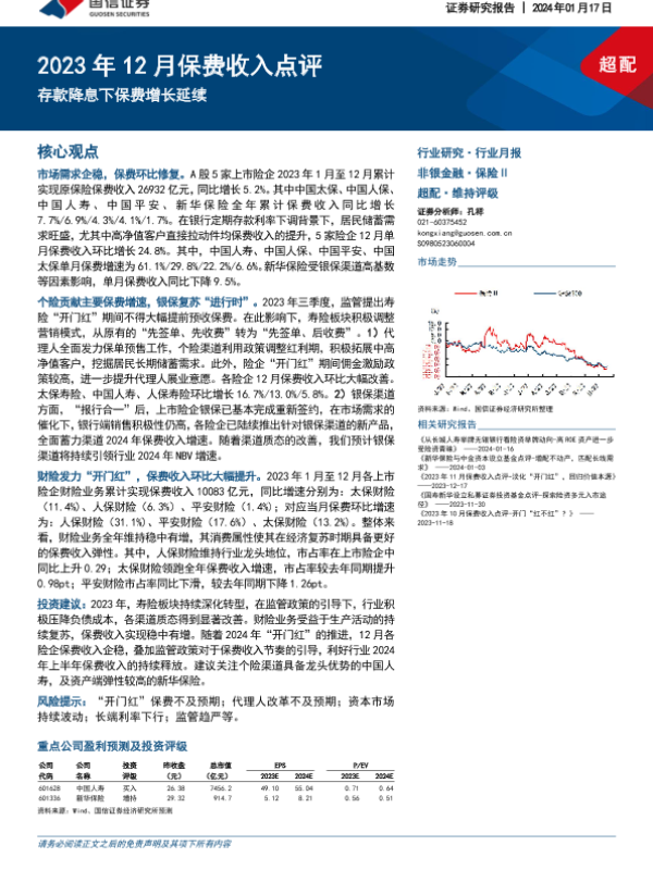 【国信证券】【20240117】2023年12月保费收入点评:存款降息下保费增长延续-11页