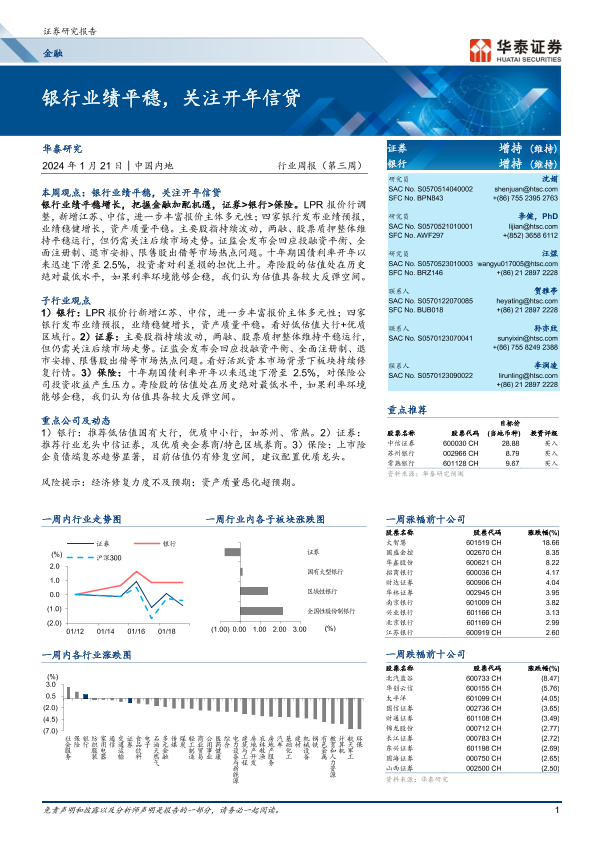 【华泰证券】【20240121】银行业绩平稳,关注开年信贷-30页