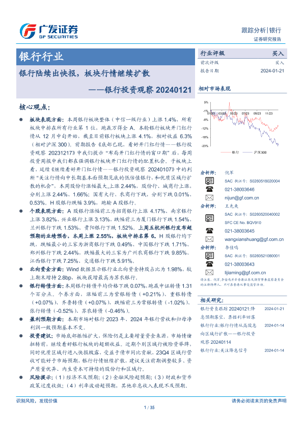 【广发证券】【20240121】银行陆续出快报,板块行情继续扩散-35页