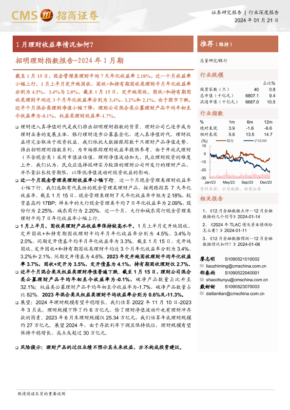 【海通证券】【20240121】招明理财指数报告-2024年1月期:1月理财收益率情况如何?-23页