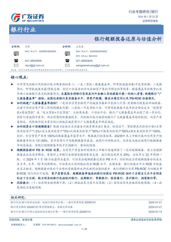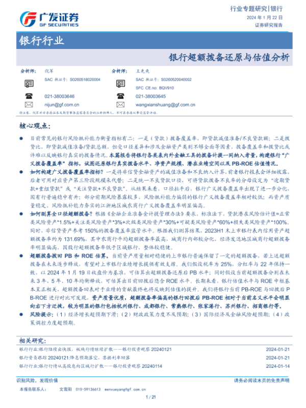 【广发证券】【20240122】银行超额拨备还原与估值分析-21页