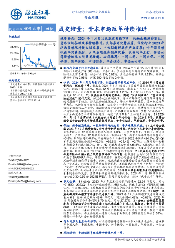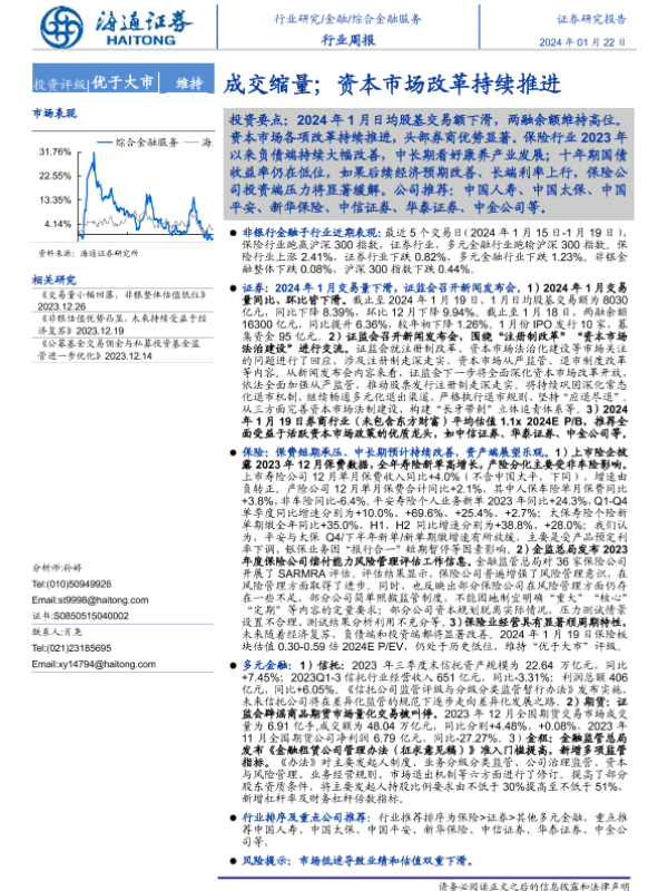 【海通证券】【20240122】综合金融服务行业周报:成交缩量;资本市场改革持续推进-12页