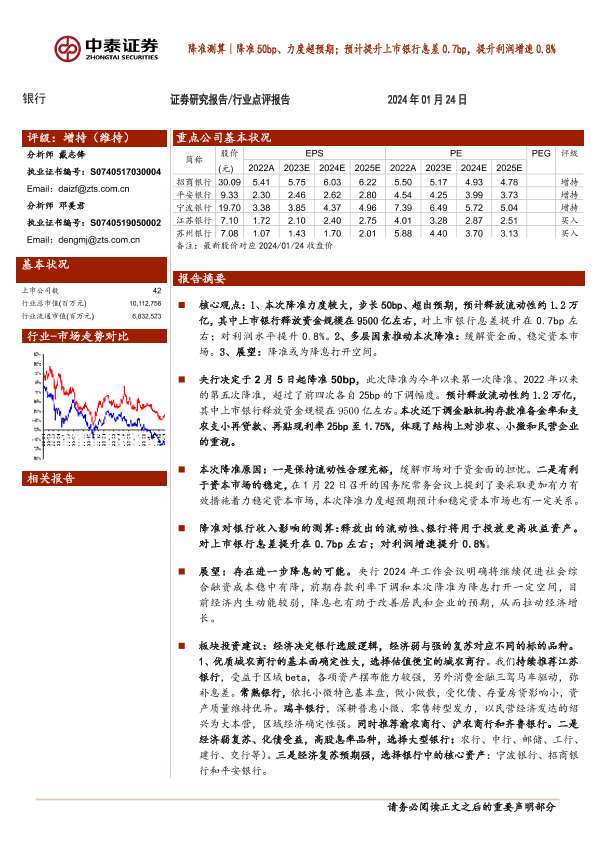 【中泰证券】【20240124】降准测算|降准50bp、力度超预期-12页