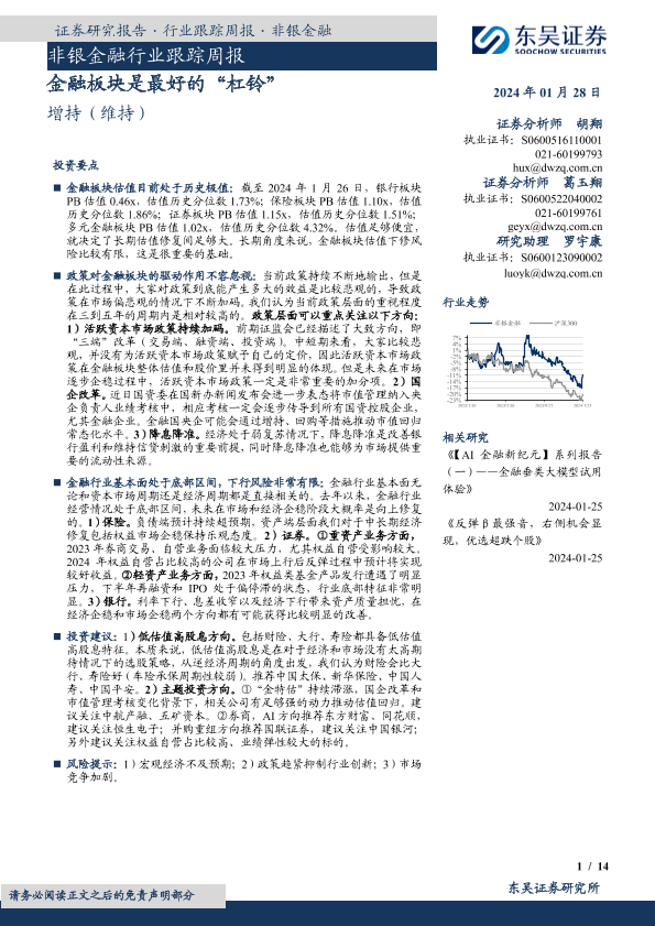 【东吴证券】【20240128】非银金融行业跟踪周报:金融板块是最好的‘杠铃’-14页