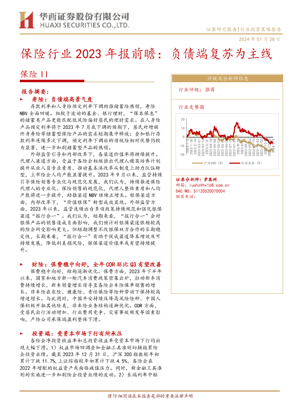 【华西证券】【20240128】保险行业2023年报前瞻:负债端复苏为主线-15页