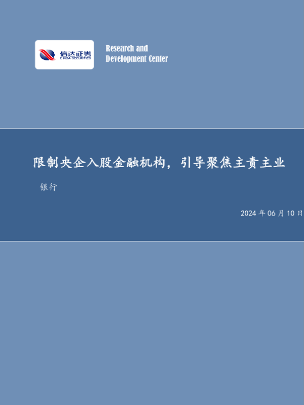 【信达证券】【20240610】限制央企入股金融机构,引导聚焦主责主业-16页
