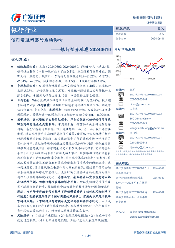 【广发证券】【20240611】信用增速回落的后续影响——银行投资观察-34页
