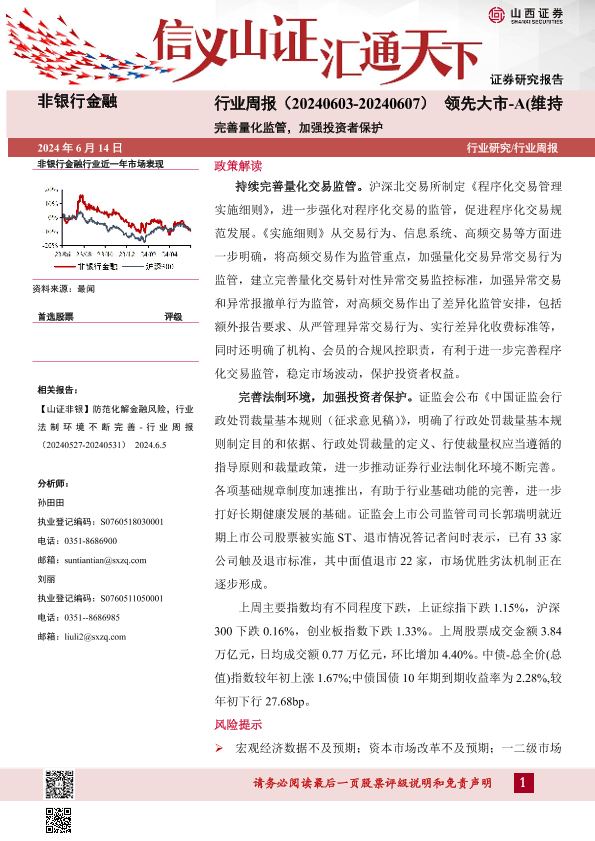 【山西证券】【20240614】非银行金融行业周报:完善量化监管,加强投资者保护-11页