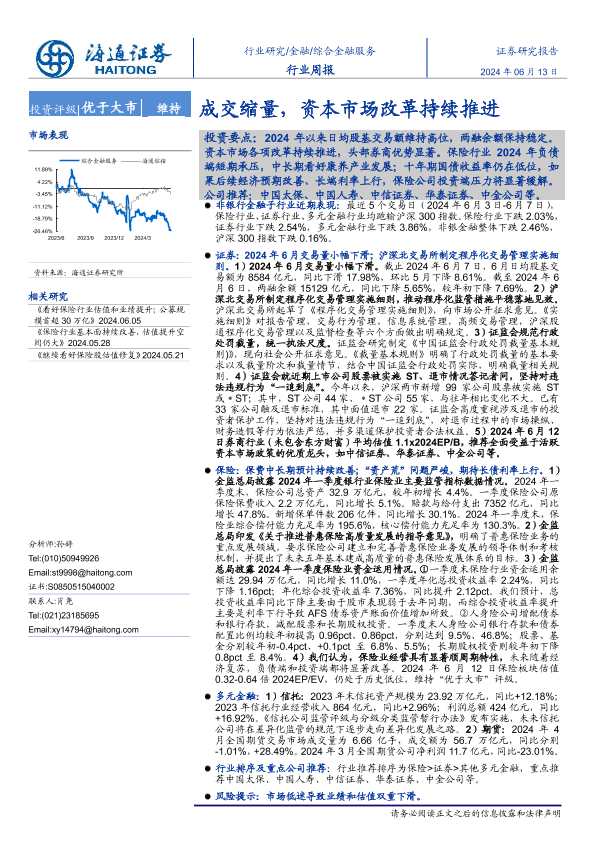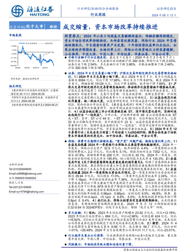 【海通证券】【20240613】综合金融服务行业周报:成交缩量,资本市场改革持续推进-12页