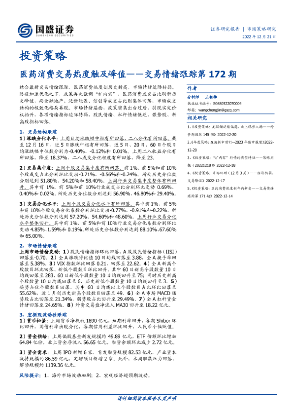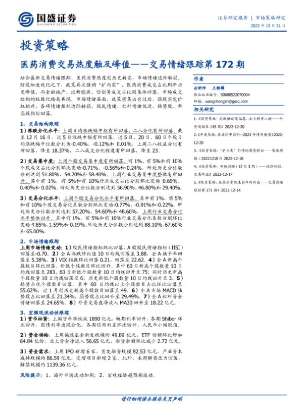 【国盛证券】【20221221】交易情绪跟踪第172期:医药消费交易热度触及峰值-16页