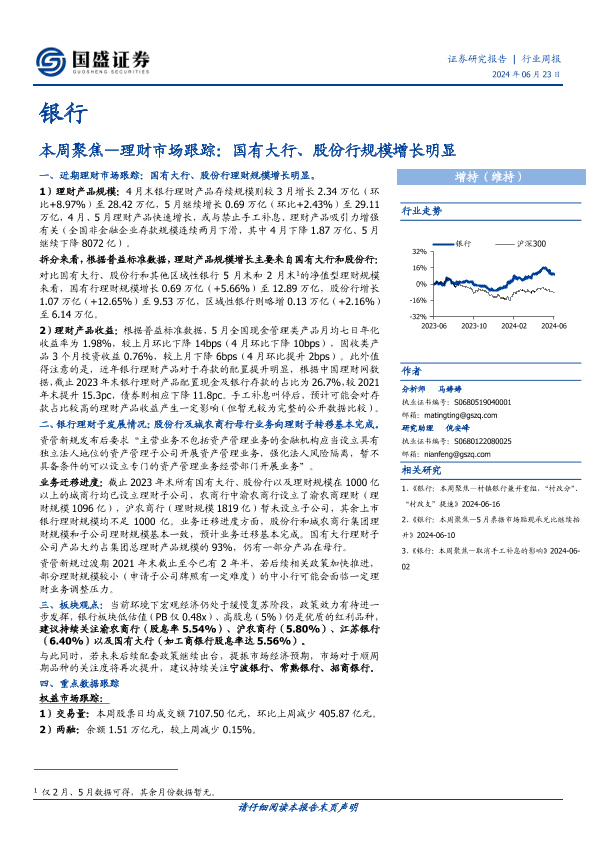 【国盛证券】【20240623】本周聚焦:理财市场跟踪,国有大行、股份行规模增长明显-12页