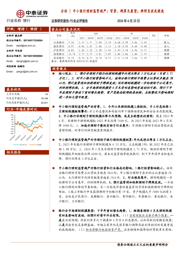 【中泰证券】【20240623】中小银行理财监管趋严:背景、测算及展望;牌照发放或提速-12页