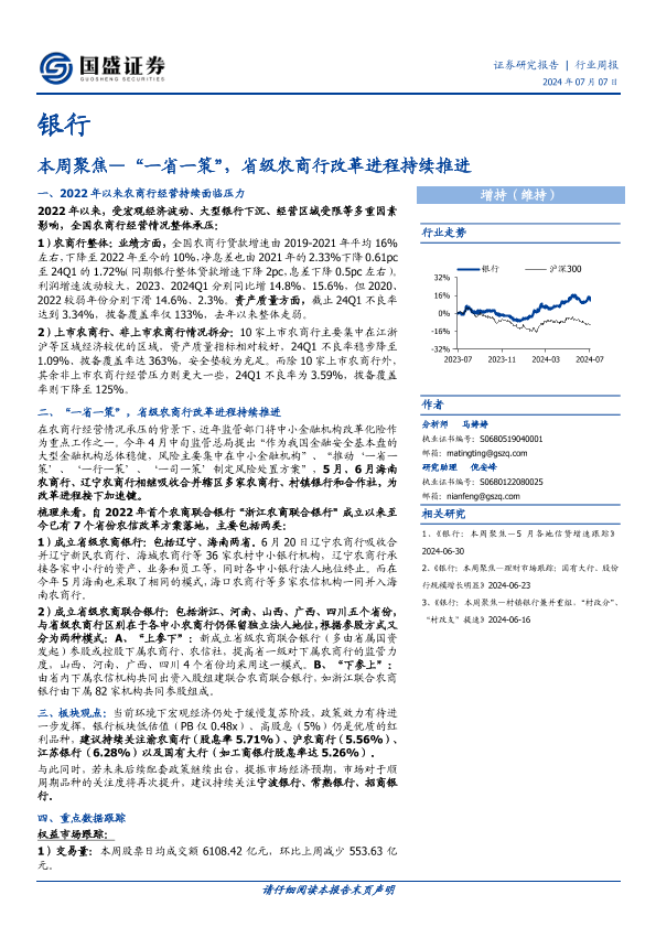 【国盛证券】【20240707】银行业本周聚焦:“一省一策”,省级农商行改革进程持续推进-11页