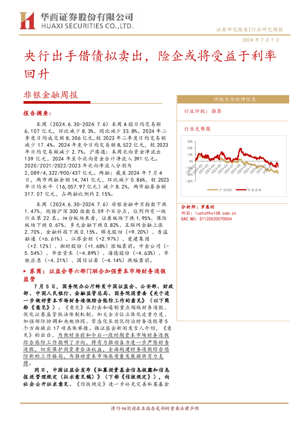 【华西证券】【20240707】央行出手借债拟卖出,险企或将受益于利率回升-15页