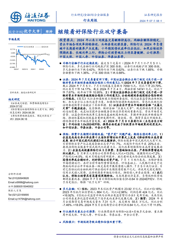 【海通证券】【20240708】综合金融服务行业周报:继续看好保险行业攻守兼备-12页