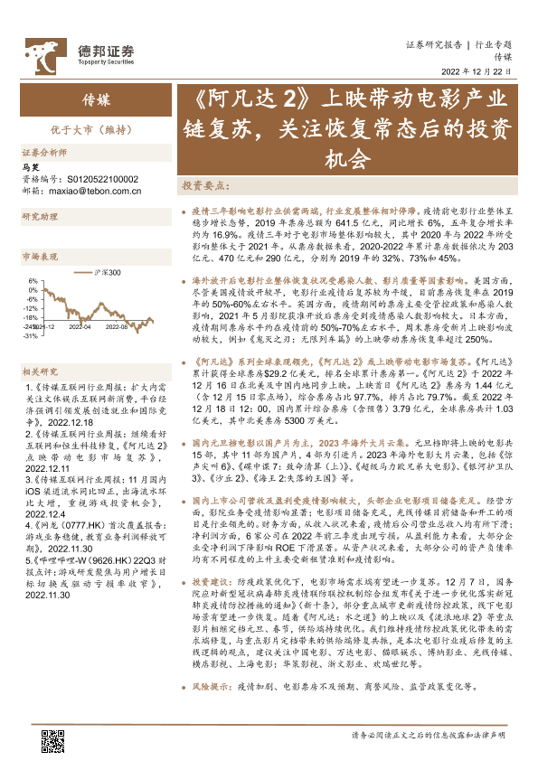 【德邦证券】【20221222】传媒行业:《阿凡达2》上映带动电影产业链复苏,关注恢复常态后的投资机会-25页