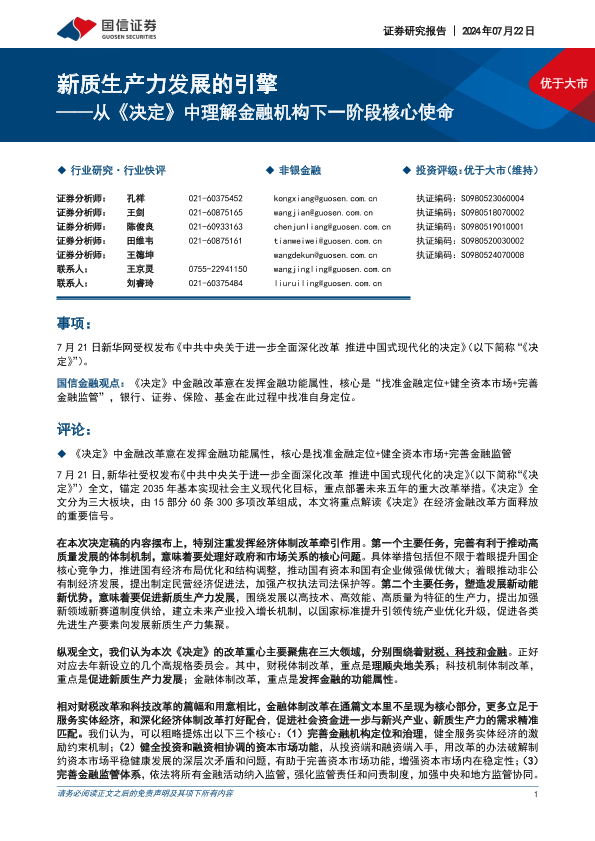 【国信证券】【20240722】从《决定》中理解金融机构下一阶段核心使命:新质生产力发展的引擎-15页