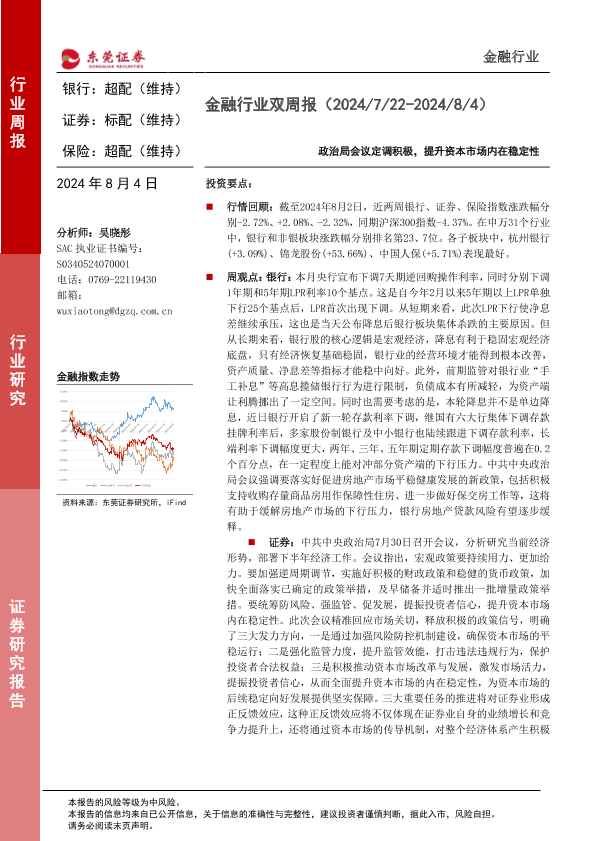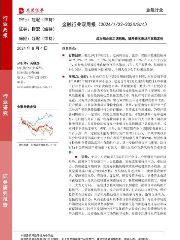 【东莞证券】【20240804】金融行业双周报:政治局会议定调积极,提升资本市场内在稳定性-14页