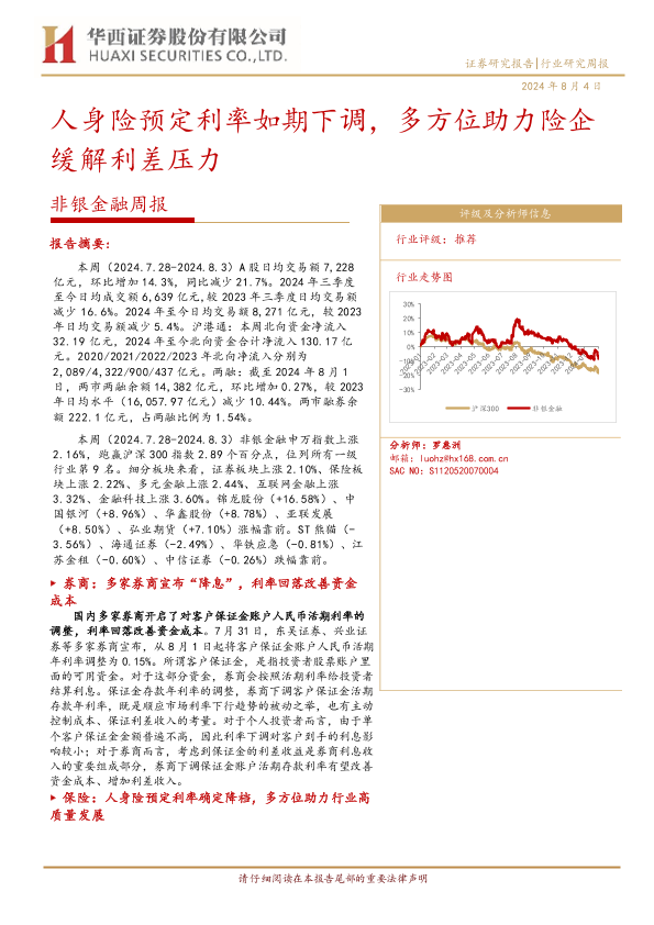 【华西证券】【20240804】人身险预定利率如期下调,多方位助力险企缓解利差压力-13页