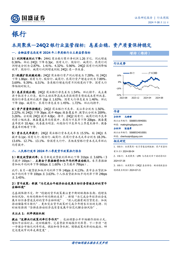 【国盛证券】【20240811】24Q2银行业监管指标:息差企稳,资产质量保持稳定-12页