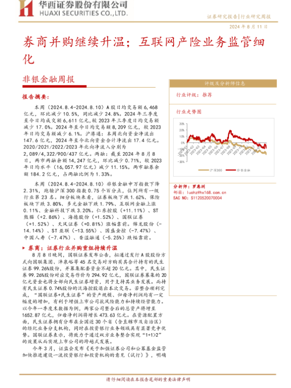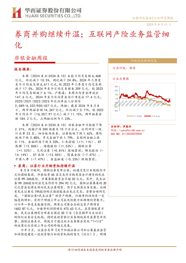 【华西证券】【20240811】非银金融周报:券商并购继续升温;互联网产险业务监管细化-14页