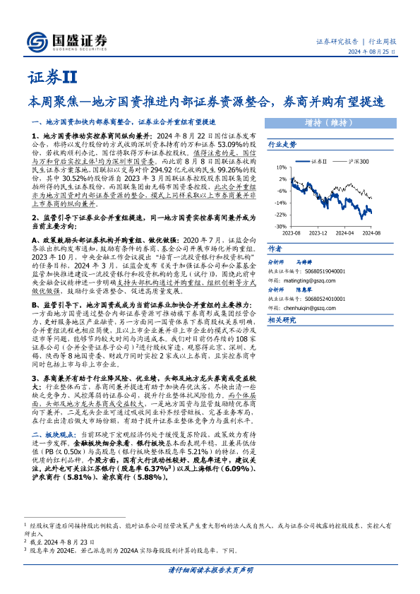 【国盛证券】【20240825】证券Ⅱ本周聚焦:地方国资推进内部证券资源整合,券商并购有望提速-12页