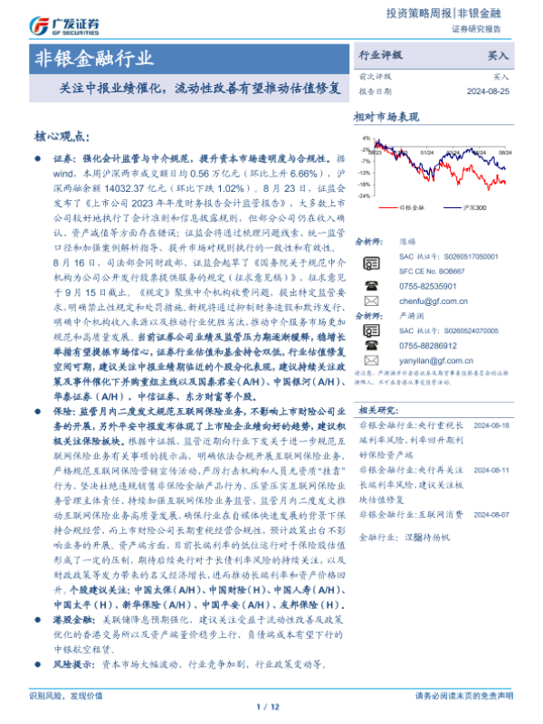 【广发证券】【20240825】非银金融行业投资策略周报:关注中报业绩催化,流动性改善有望推动估值修复-12页