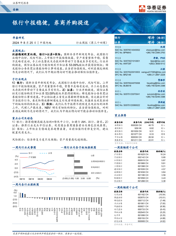 【华泰证券】【20240825】金融行业周报(第三十四周):银行中报稳健,券商并购提速-25页