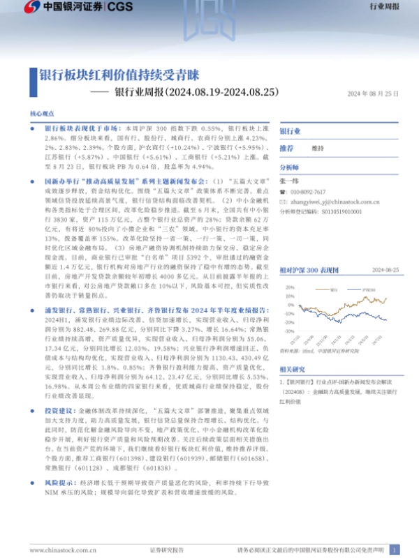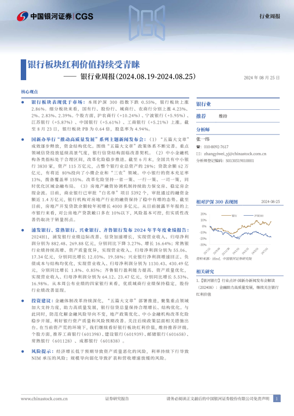 【银河证券】【20240825】银行业周报:银行板块红利价值持续受青睐-21页