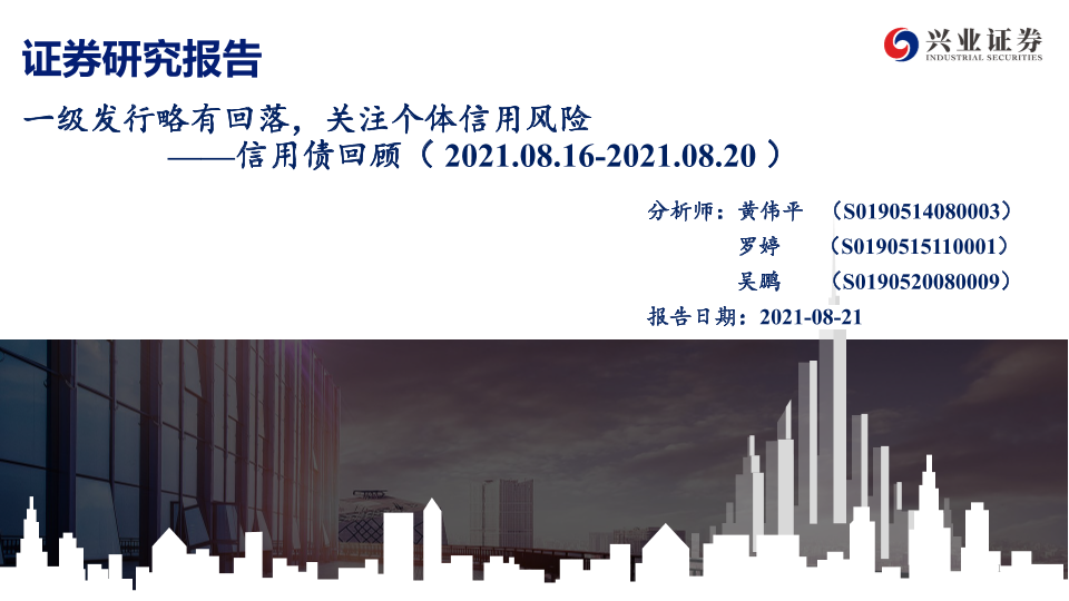 【兴业证券】【20210821】信用债回顾:一级发行略有回落,关注个体信用风险-37页