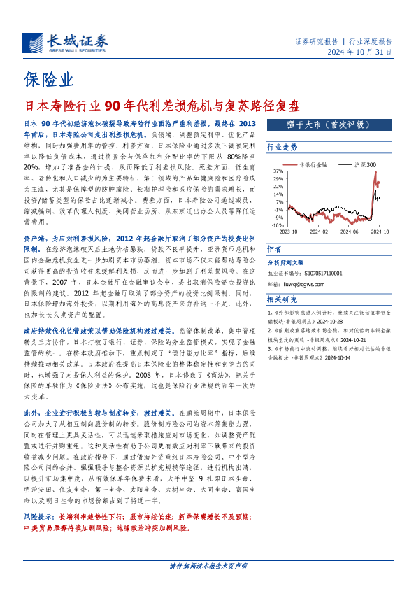 【长城证券】【20241031】保险业:日本寿险行业90年代利差损危机与复苏路径复盘-26页