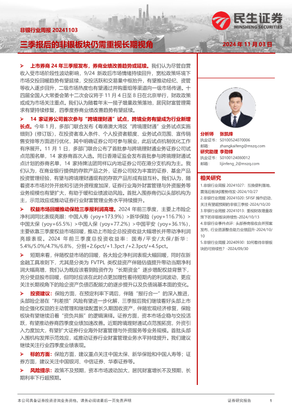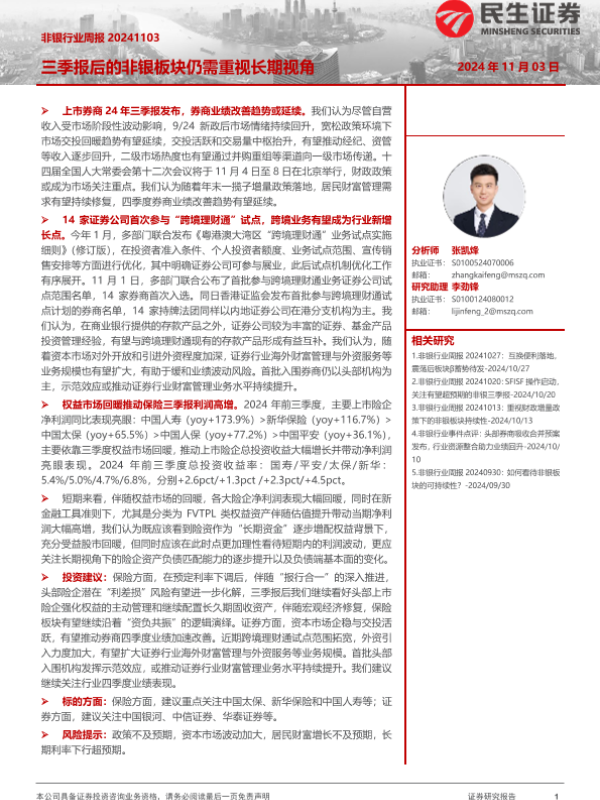 【民生证券】【20241103】非银行业周报:三季报后的非银板块仍需重视长期视角-14页