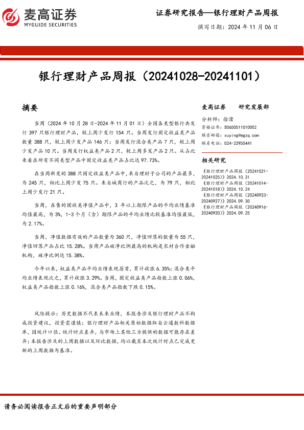 【麦高证券】【20241106】银行业理财产品周报-13页