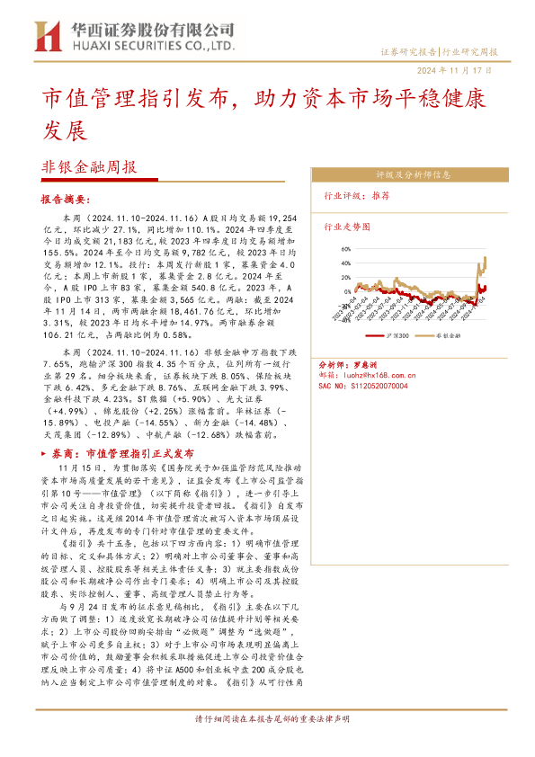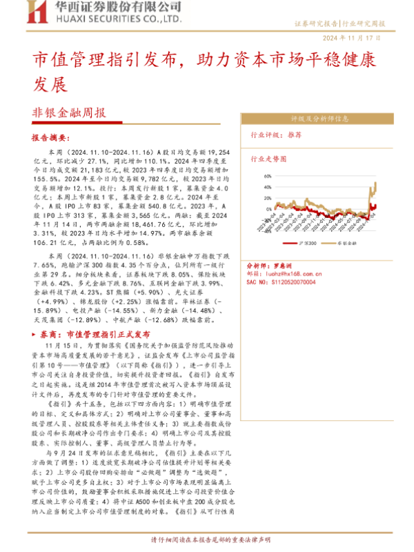 【华西证券】【20241117】非银金融周报:市值管理指引发布,助力资本市场平稳健康发展-12页