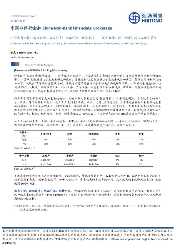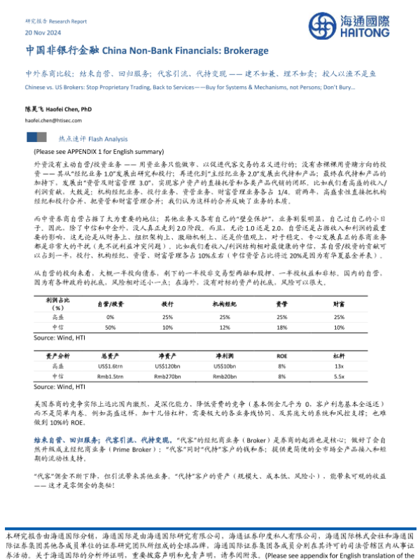 【海通国际】【20241120】中外券商比较:结束自营、回归服务;代客引流、代持变现——建不如兼、埋不如卖;授人以渔不是鱼-10页