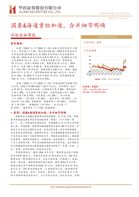 【华西证券】【20241124】非银金融周报:国泰&海通重组加速,合并细节明确-12页