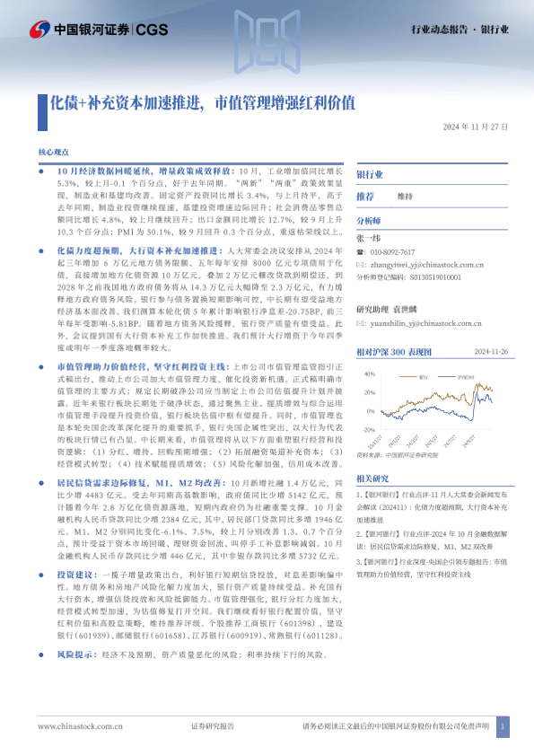 【银河证券】【20241127】银行业行业动态报告:化债+补充资本加速推进,市值管理增强红利价值-20页