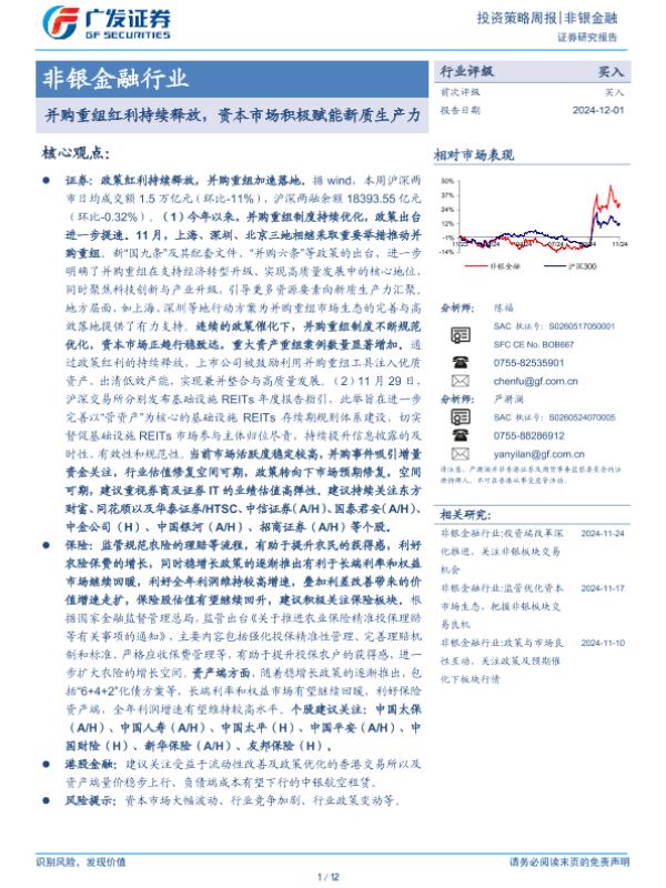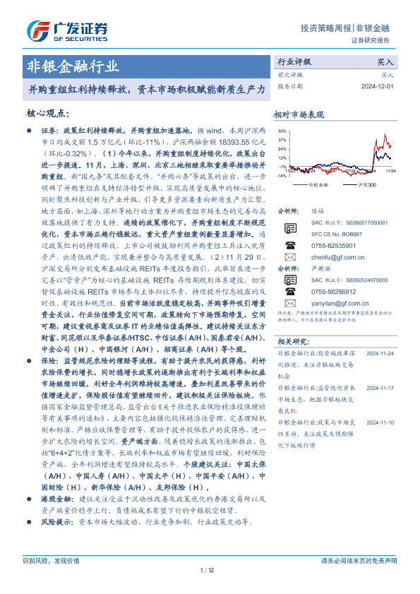 【广发证券】【20241201】非银金融行业投资策略周报:并购重组红利持续释放,资本市场积极赋能新质生产力-12页